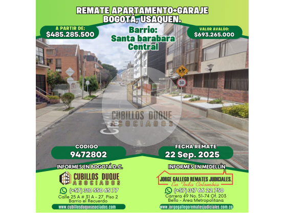 REMATE APARTAMENTO+GARAJE BOGOTÁ, USAQUEN, SANTA BARBARA CENTRAL