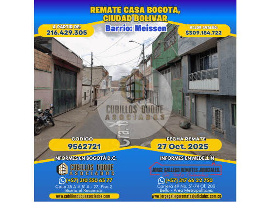 REMATE CASA BOGOTA, CIUDAD BOLIVAR MEISSEN