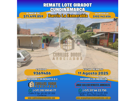 REMATE INMUEBLE GIRADOT, CUND. URB. LA ESMERALDA (LT MZ H)